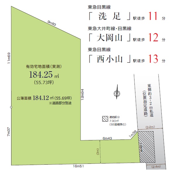 ◆建築条件なし◆東急目黒線 洗足駅徒歩11分 !ゆとりの土地面積55坪超! ※建物参考プランあり